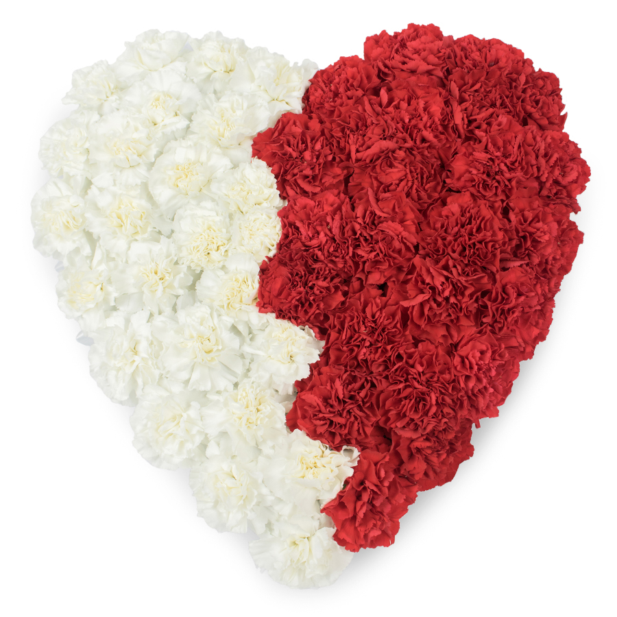 Handy Flowers presents the Charming Carnation Heart Bouquet, a delightful arrangement featuring white and red carnations. This heart-shaped display is perfect for conveying love, sympathy, and appreciation.