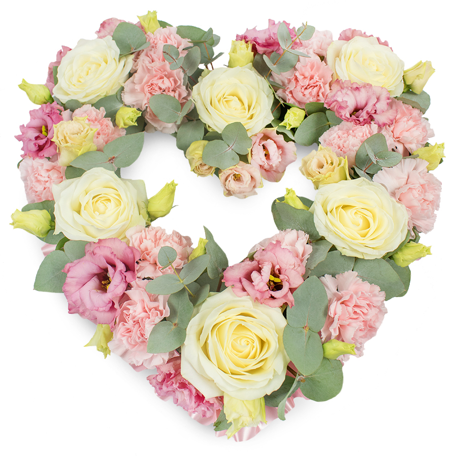 Express your heartfelt remembrance with our Graceful Remembrance Bouquet. This elegant arrangement features white roses, pink carnations, and pink lisianthus, beautifully complemented by fragrant eucalyptus leaves.